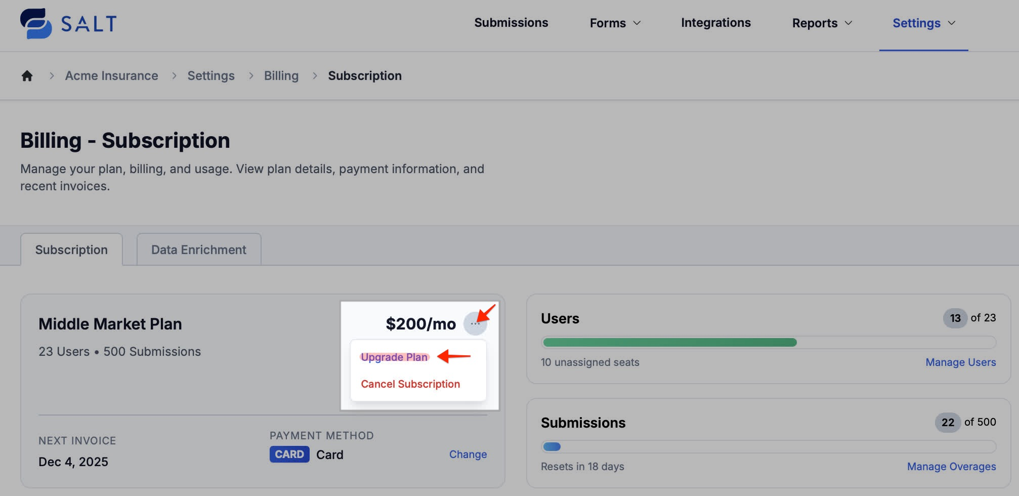 - Choose the plan that accommodates the required number of seats and confirm the upgrade.
