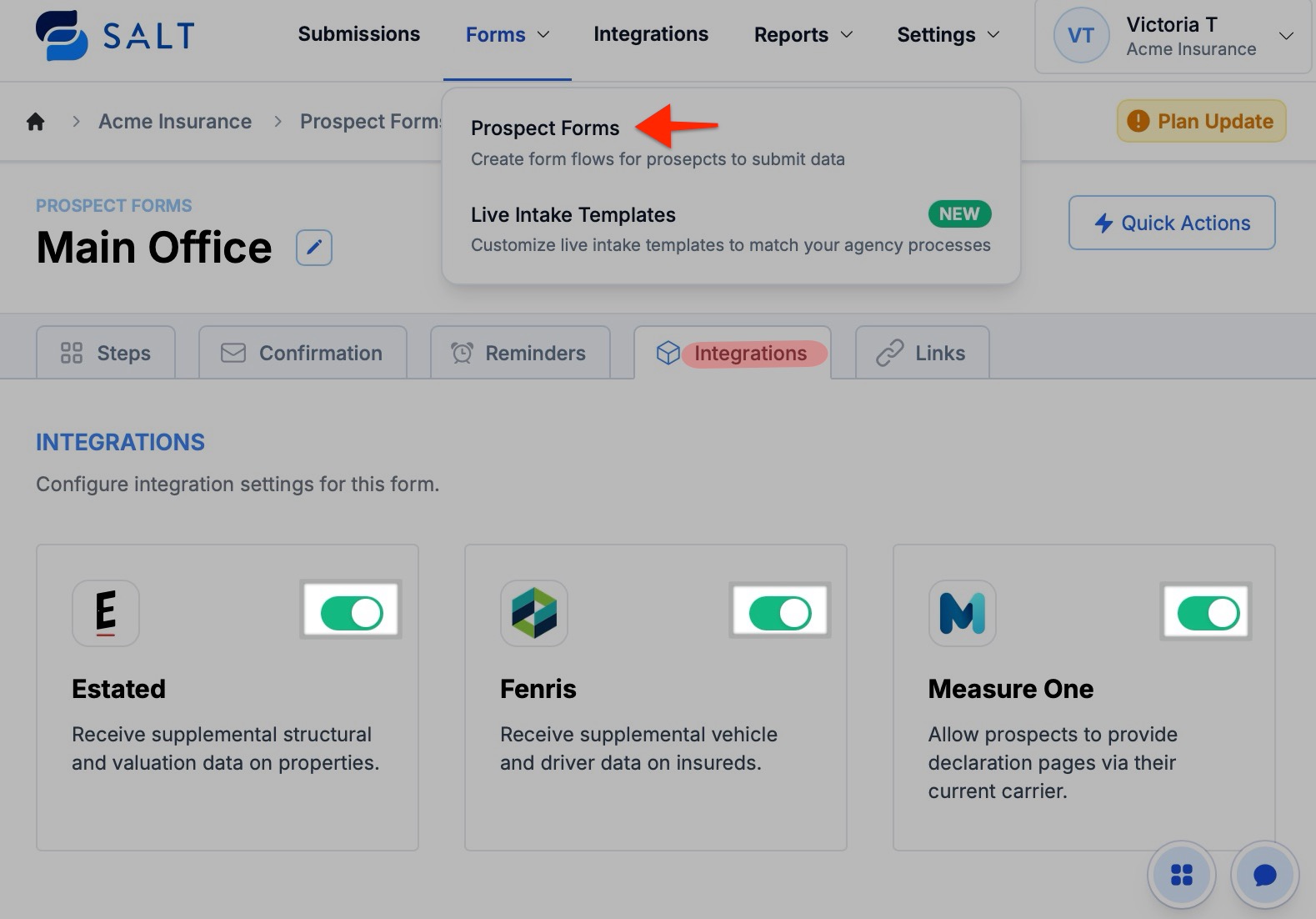Once enabled, Managers with form-editing permission enabled can toggle these data integrations on/off at the form level.
